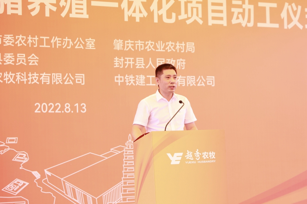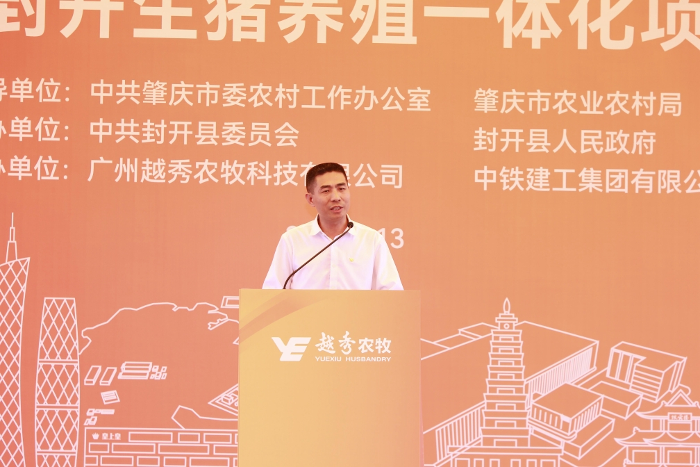 肇庆市委常委、封开县委书记秦波在致辞中向ag亚洲集团封开生猪养殖一体化项目的开工表示祝贺。他指出,ag亚洲集团集团是横跨一二三产业的大型综合性国有企业,ag亚洲集团食品是粤港澳大湾区领先的全产业链食品产业集团。ag亚洲集团农牧封开生猪养殖一体化项目从签约到全面动工仅用1年的时间,集团以高度的战略思维、深厚的战略情怀,一流的团队、一流的进度效果狠抓落实,充分体现了新时代国有企业的强大实力、责任担当和优良作风。肇庆市、封开县各级部门将在政策扶持、要素保障、政务服等方面给予项目全方位的支持,全面推动项目建设,争取早日竣工达产。